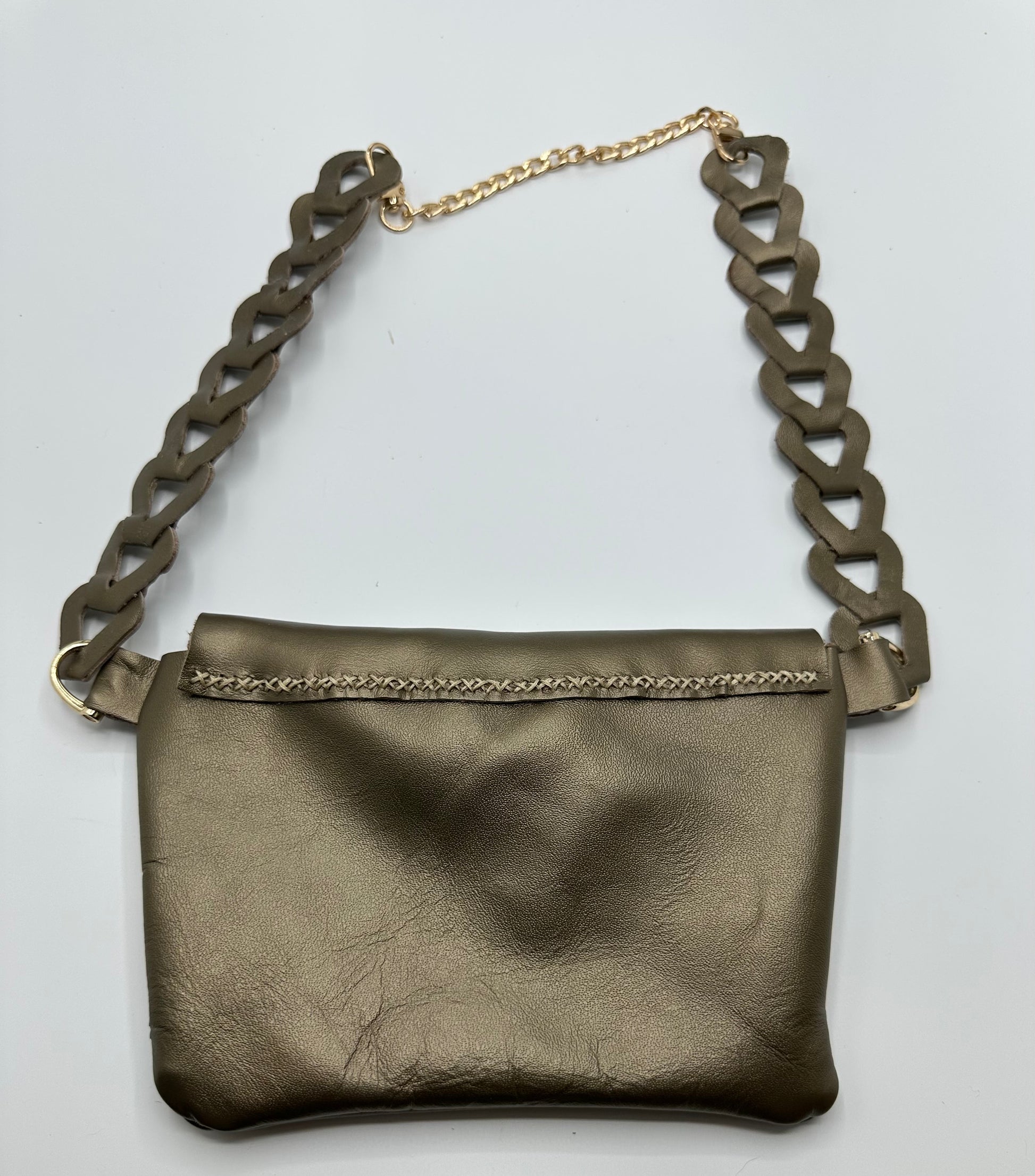 Beautiful top grain leather purse with handmade leather strap. The small chain extender is included but can be replaced with a longer chain at your convenience. Gorgeous classy one of a kind piece. Heart shaped snap closure adds just a touch of beauty.